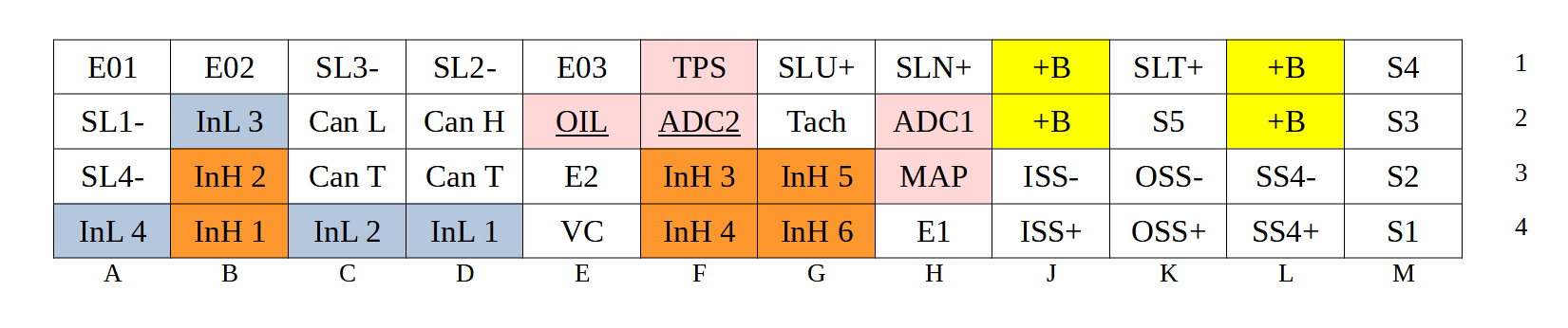 | SL1-, SL2-, SL3-, SL4- | Выходы на ШИМ соленоиды (минусом) |