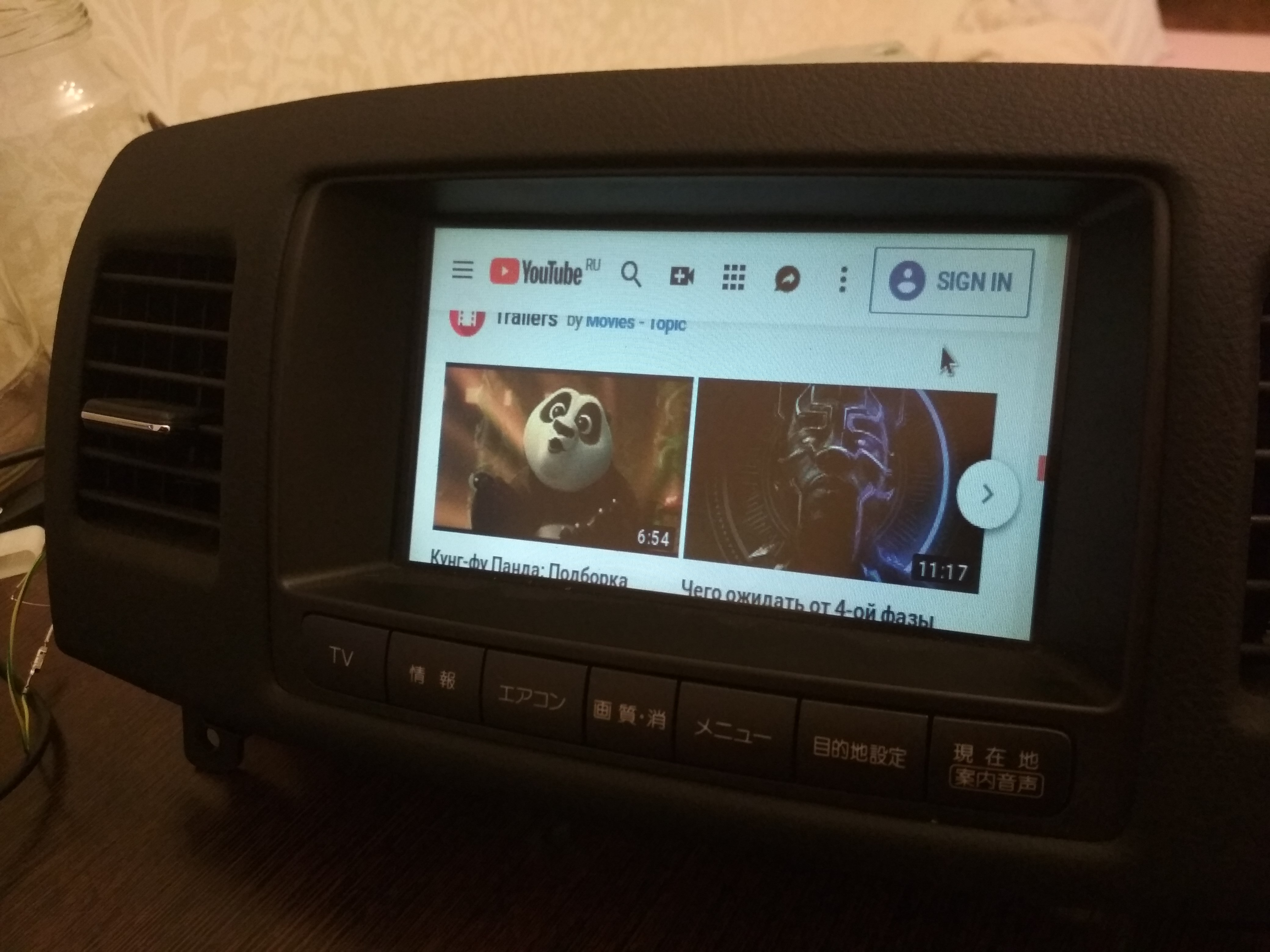 Самой удобной точкой для внедрения своего видео-сигнала выглядит подключение штатного блока навигации. Для передачи видео используется схема RGBs (аналогичная стандарту scart) поэтому без проблем можно подключить выход VGA. в VGA используется схема RGBhv, с отдельными линиями для вертикальной и горизонтальной синхронизации.