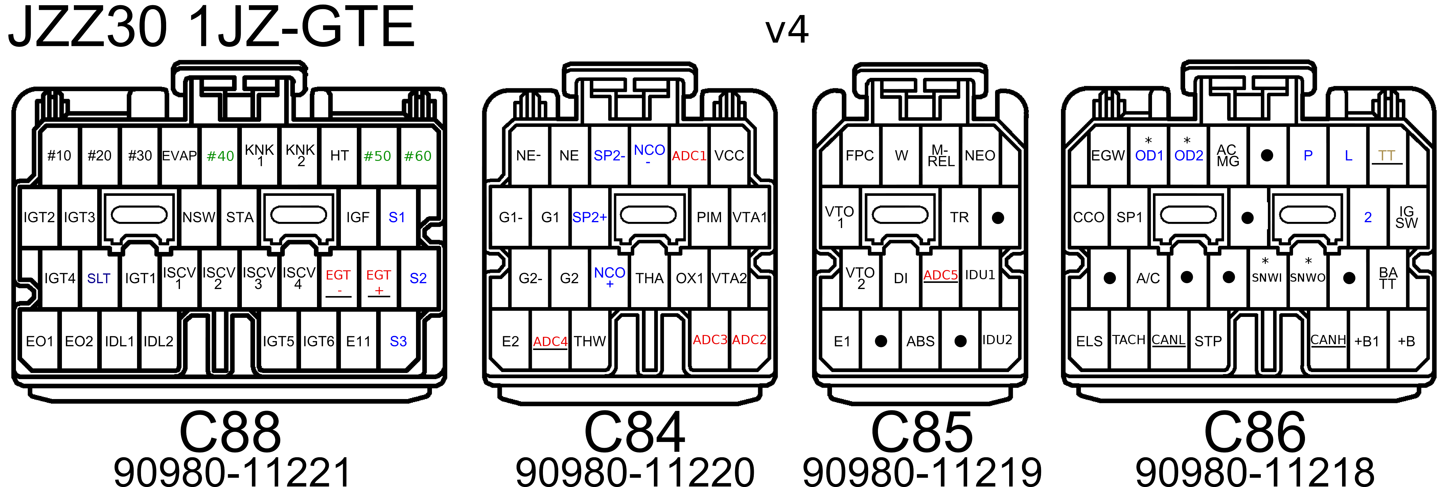 - * каналы OD1 и OD2 в первой ревизии блока (JZX90-1) имеют ограничения - первый является дискретным входом, второй - выходом. для корректного включения кнопки overdrive off необходимо поменять друг с другом провода в разъеме (на JZX90 есть только один провод - OD2. его надо переставить на OD1)